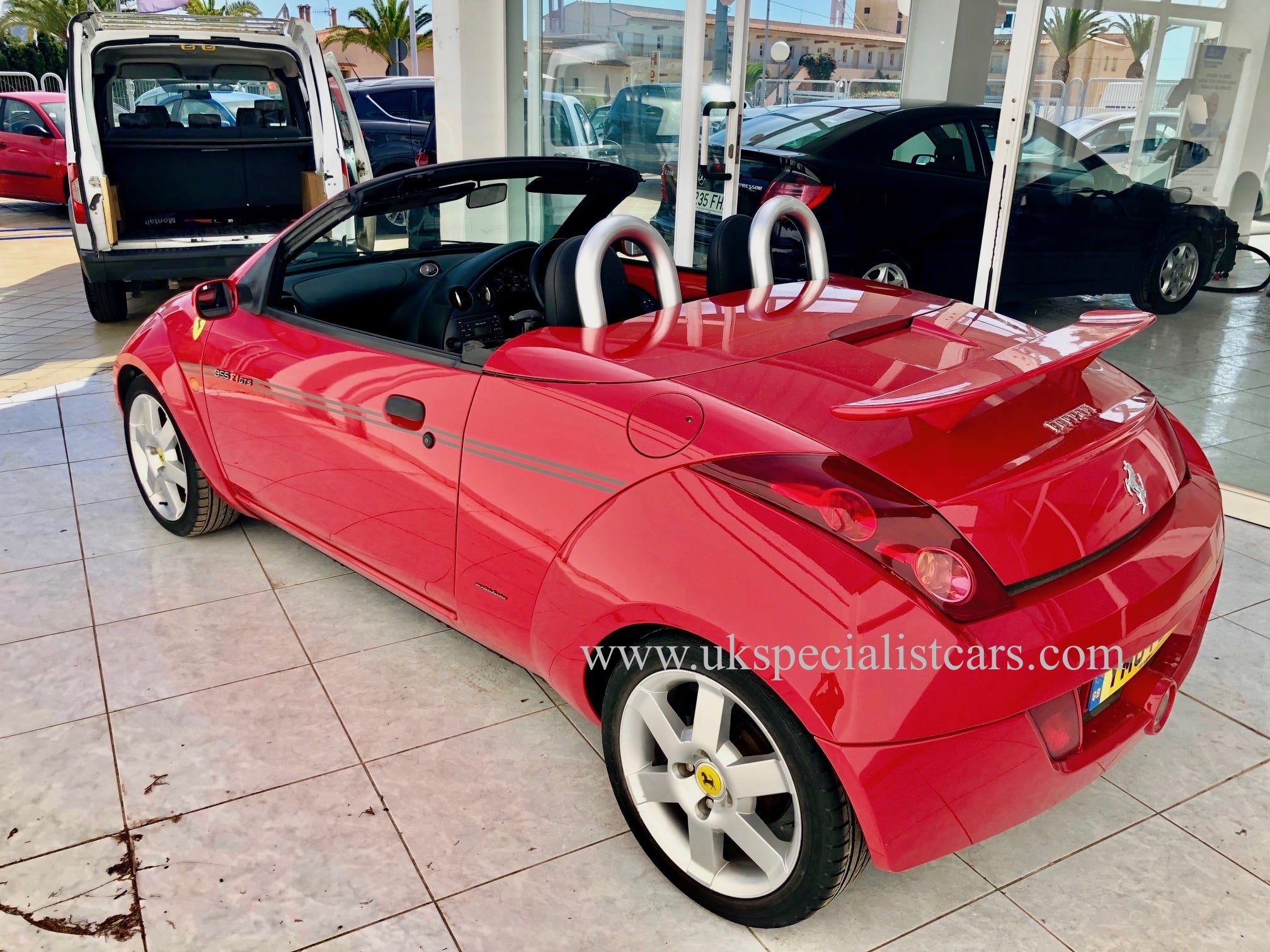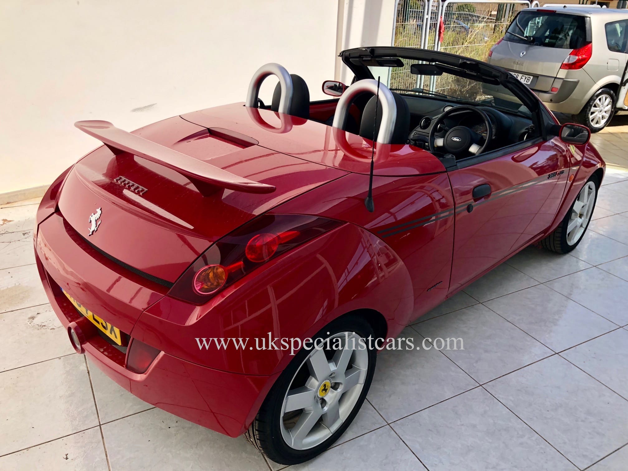 2004 Ferrari Ford Street KA convertible low KMS in Spain – FERRARI ROSSO CORSA RED, FULL BLACK LEATHER INTERIOR, UPGRADE ALLOY WHEELS WITH FERRARI CENTRE CAPS, SCUDERIA BONNET AND EXTERIOR STRIPES, CD MULIPLAYER & RADIO, CLIMATE CONTROL, AIR CONDITIONING, ELECTRIC WINDOWS, CUPHOLDERS, REMOTE LOCKING WITH ALARM, FULLY ADJUSTABLE SEATS, FRONT AND REAR HEAD RESTS. A REAL HEAD TURNER WITH ONLY 49,000 GENUINE MILES!